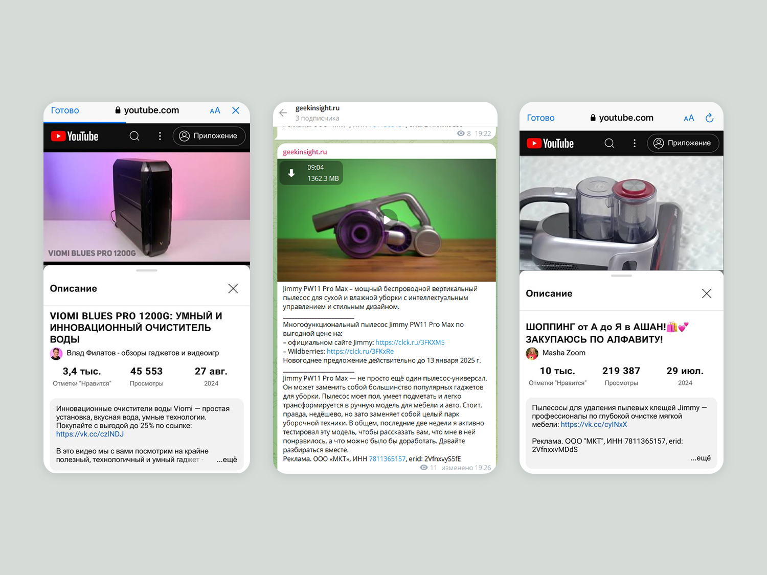 — интеграции товаров у lifestyle-блогеров на YouTube, в VK и Telegram.